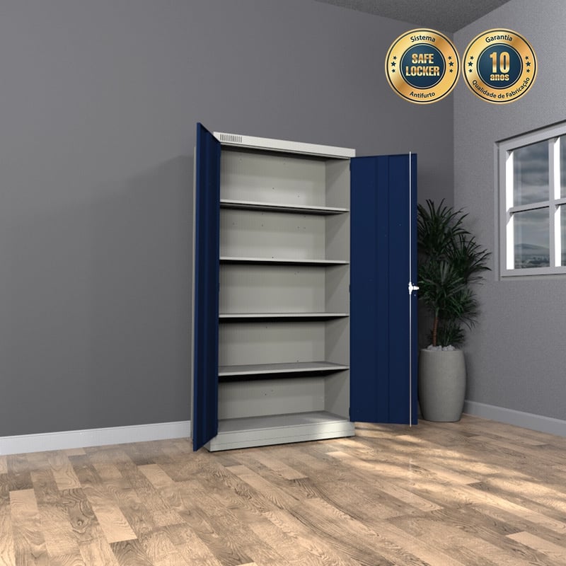 O Armário Multiuso para Escritório – Nk 1802 é versátil, robusto e, ao mesmo tempo, seguro, ideal para armazenar materiais em escritórios, indústrias, escolas e hospitais. Além disso, é feito em aço galvanizado com tripla proteção anticorrosiva, o que garante resistência. Com 4 prateleiras reforçadas e capacidade para 60 kg por prateleira, oferece segurança e também praticidade. Enquanto isso, o trancamento triplo protege os itens armazenados, por isso é confiável. Por fim, a pintura antimicrobiana garante higiene, enquanto as dobradiças reforçadas e as dobras sem arestas asseguram durabilidade e segurança. Ainda assim, com 19 opções de cores e estrutura preta sem custo extra, atende diversas necessidades com design e funcionalidade.