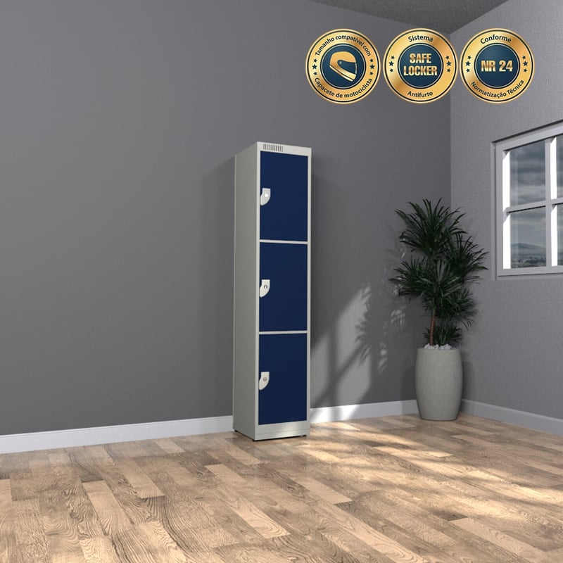 O Armário – 03 portas é um Locker de Aço, desenvolvido para oferecer máxima segurança, durabilidade e personalização.