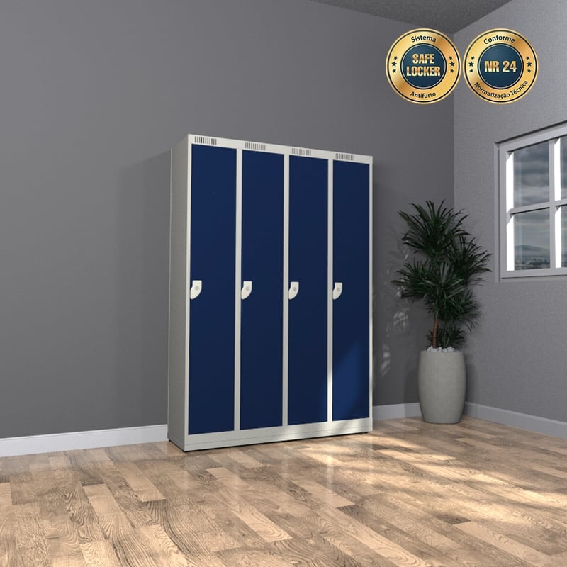 O Armário para Vestiário – 4 portas – Nk 4301 foi projetado para proporcionar segurança, durabilidade e eficiência, especialmente em ambientes que exigem organização e resistência, como vestiários industriais, hospitais e empresas. Além disso, o modelo é equipado com 4 portas e conta com duas prateleiras internas e suporte para cabides, o que facilita significativamente o armazenamento de pertences e vestimentas. Ainda, está disponível em 19 opções de cores e pode ser personalizado com opcionais como pé elevado e chapéu. Portanto, é uma escolha que une funcionalidade e estética. O modelo segue rigorosamente as normas da NR 24 e oferece 10 anos de garantia, reforçando sua confiabilidade.