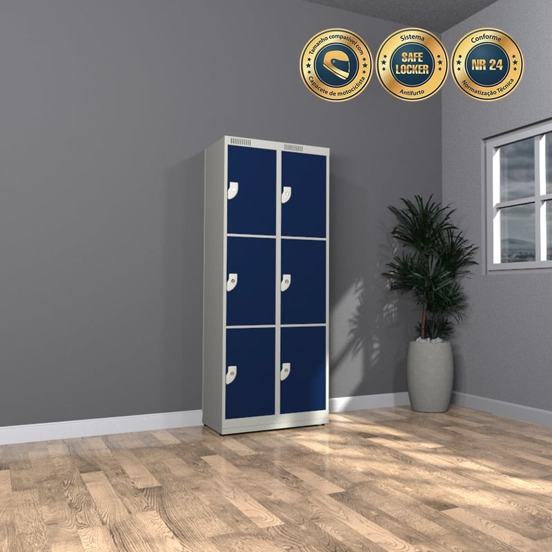 Conforme exigido pela NR 24, o Nk 2333 – Locker – 06 portas atende aos critérios técnicos para vestiários e guarda-volumes em ambientes profissionais. Além disso, sua estrutura robusta proporciona confiança e longa vida útil. Por isso, conta com 10 anos de garantia contra defeitos de fabricação.