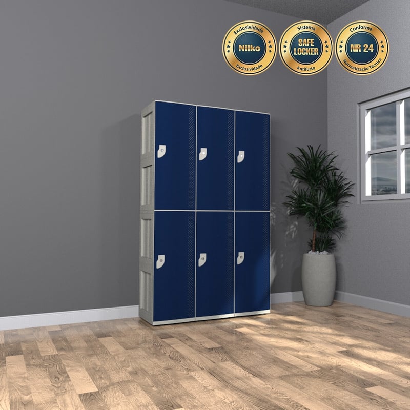 O Armário para Vestiário Plástico – Nk 3372 com 6 portas e estrutura em módulos duplos é, antes de tudo, a escolha ideal para ambientes que exigem não só resistência à corrosão, mas também fácil higienização e durabilidade. Por isso, ele é produzido em ABS de alto impacto, garantindo total resistência, além de ser totalmente lavável e, ainda por cima, resistente à maresia e produtos químicos.