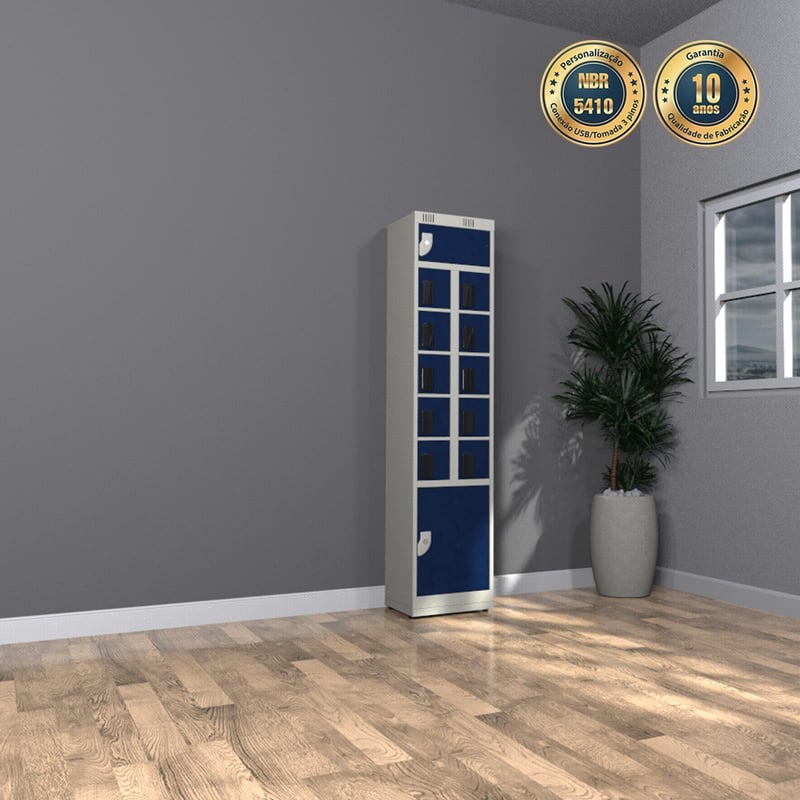 O Armário Carregador de Celular – Nk 2720 foi projetado para para oferecer segurança, praticidade e carregamento individual em ambientes corporativos, academias, escolas e centros comerciais. Com 10 portas independentes, cada compartimento conta com entrada USB exclusiva, permitindo que os usuários carreguem seus dispositivos de forma simultânea e segura.
