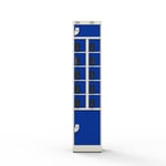 Além disso, o modelo incorpora um sistema de segurança avançado, com fechaduras digitais de código numérico. Dessa forma, cada usuário pode cadastrar sua própria senha, garantindo total privacidade e confiabilidade no armazenamento. Como complemento, o armário também possui uma porta de uso geral na parte inferior, bem como uma porta superior que dá acesso aos disjuntores, o que facilita a manutenção e o controle elétrico.