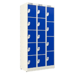 O Armário possui 14 compartimentos individuais. Assim, é projetado para armazenar mochilas, malas, roupas e EPIs com eficiência. Os compartimentos são distribuídos em duas colunas com 5 portas e uma com 4 portas, garantindo aproveitamento otimizado do espaço.