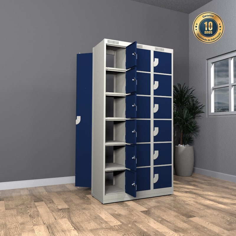 O Armário Distribuidor de Duplo Acesso – Linha Bívia – Nk 183652 é a escolha ideal para quem busca um guarda-volumes funcional e, ao mesmo tempo, sofisticado. Com 18 portas e, graças ao acesso bifacial, permite o uso dos dois lados, contribuindo para a otimização dos espaços e ainda garante mais praticidade tanto para os usuários quanto para os funcionários. Além disso, foi especialmente projetado para ambientes que demandam uma organização eficiente, como lavanderias, academias, indústrias e também comércios, tornando-se assim uma solução versátil e altamente funcional.