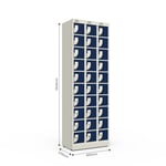Com 30 compartimentos individuais, este armário é amplamente utilizado na indústria, principalmente para guardar itens de higiene pessoal em banheiros. Além disso, acomoda com eficiência celulares, carteiras e objetos de valor, contribuindo para um ambiente mais organizado e seguro.