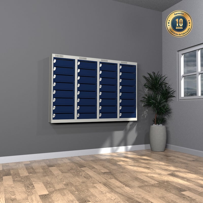 O Armário para Correspondência – Nk 2716, com 32 portas, é ideal para a organização e proteção de correspondências, principalmente em espaços com alto fluxo de entregas. Além disso, as aberturas nas portas permitem o depósito de cartas, jornais e revistas de forma prática, mantendo os itens seguros até a retirada. Por isso, é uma solução eficiente para empresas, condomínios e instituições. Fabricado com aço de alta durabilidade e tripla proteção anticorrosiva, ainda conta com pintura bactericida e antimicrobiana. Ademais, sua estrutura robusta, com dobradiças reforçadas, garante mais resistência ao uso contínuo. Por fim, a fixação na parede e o design inteligente tornam este modelo funcional e eficiente para o dia a dia.