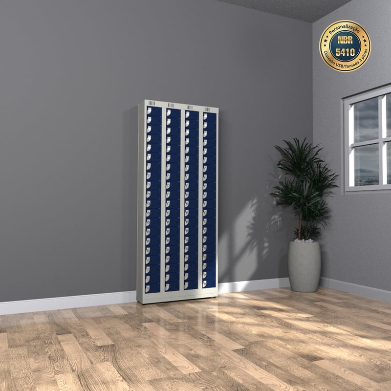 Com 80 compartimentos individuais, o modelo permite o armazenamento seguro de itens como celulares, carteiras e até ferramentas de precisão. Dessa forma, garante proteção e controle, mesmo em ambientes com grande circulação de pessoas.