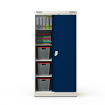 Possui fecho com chave, garantindo proteção para documentos, materiais e itens de uso restrito. Internamente, conta com 4 prateleiras, oferecendo excelente capacidade de armazenamento.