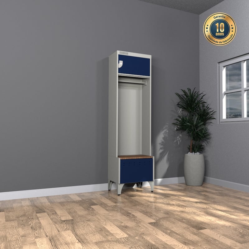 O Armário Estádio – Nk 1712 é, sem dúvida, a escolha ideal para vestiários de estádios que exigem robustez, conforto e também segurança. Projetado com compartimentos superior e inferior, além de um cabideiro central, organiza roupas, calçados e ainda acessórios esportivos de forma prática e eficiente. Além disso, o banco integrado em madeira proporciona comodidade extra durante o uso.