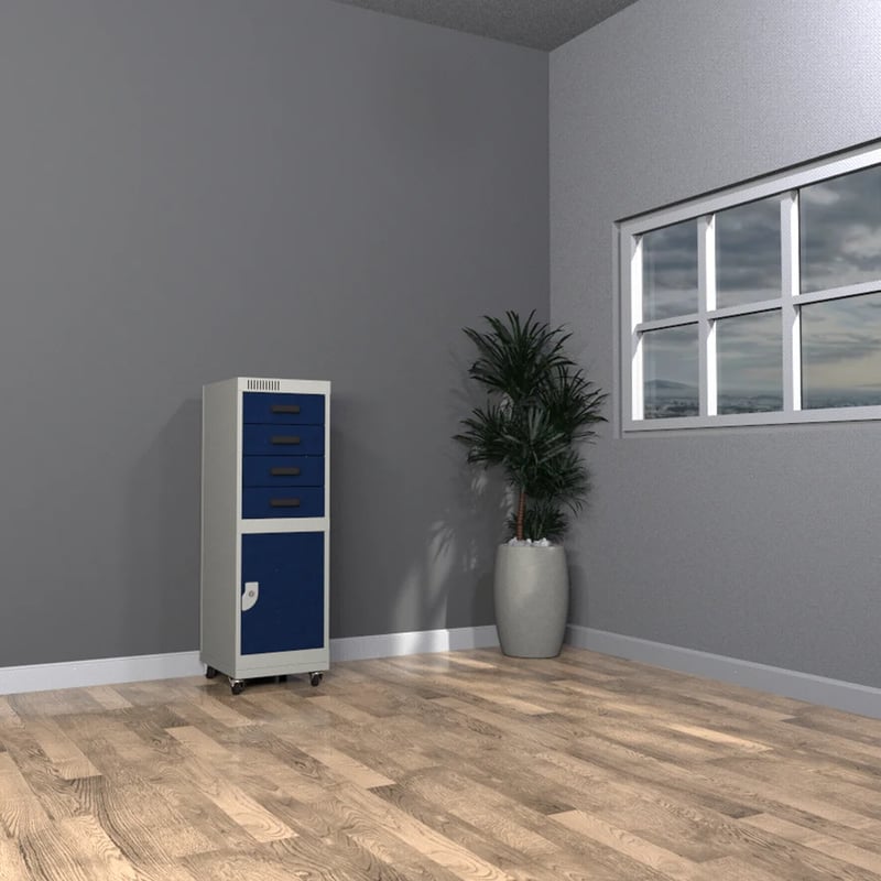 O Armário Gaveteiro com Rodízio — Nk 1711 é uma solução prática e robusta para armazenagem em ambientes corporativos, técnicos e institucionais. As gavetas contam com trancamento superior e, assim, garantem mais segurança para documentos e objetos de valor. Além disso, é fabricado com tripla camada contra corrosão, oferecendo alta resistência em locais com umidade ou produtos químicos. Conta ainda com pintura eletrostática a pó com nanotecnologia antimicrobiana e bactericida, facilitando a higienização e prevenindo micro-organismos. Ademais, possui dobras enroladas (Hands Cut Free), sem arestas cortantes e dobradiças reforçadas com 5 travas, evitando acidentes. Com rodízios, o deslocamento torna-se prático. Por fim, está disponível em várias cores e fechaduras, podendo ser personalizado conforme o seu projeto.