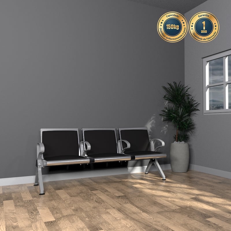 A Longarina – Assento para Sala de Espera Estofada – Nk 6010 é, sem dúvida, a escolha ideal para ambientes com grande fluxo de pessoas que demandam conforto, durabilidade e um design moderno. Com estrutura composta por alumínio e aço inox, a longarina conta com três assentos estofados com encosto na cor preta, proporcionando, assim, mais conforto aos usuários em salas de espera, recepções, aeroportos, clínicas e outros espaços corporativos.