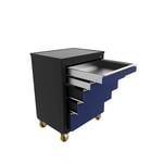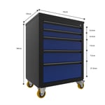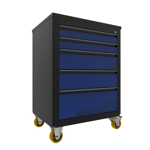 Ideal para guardar e transportar peças e ferramentas com segurança, o carrinho Tool Box é, portanto, fabricado em aço galvanizado. Conta com 5 gavetas com corrediças telescópicas, cada uma com capacidade para 30 kg. Além disso, possui travamento frontal e rodízios de 4 polegadas com giro de 360º — sendo dois com freio e dois sem.