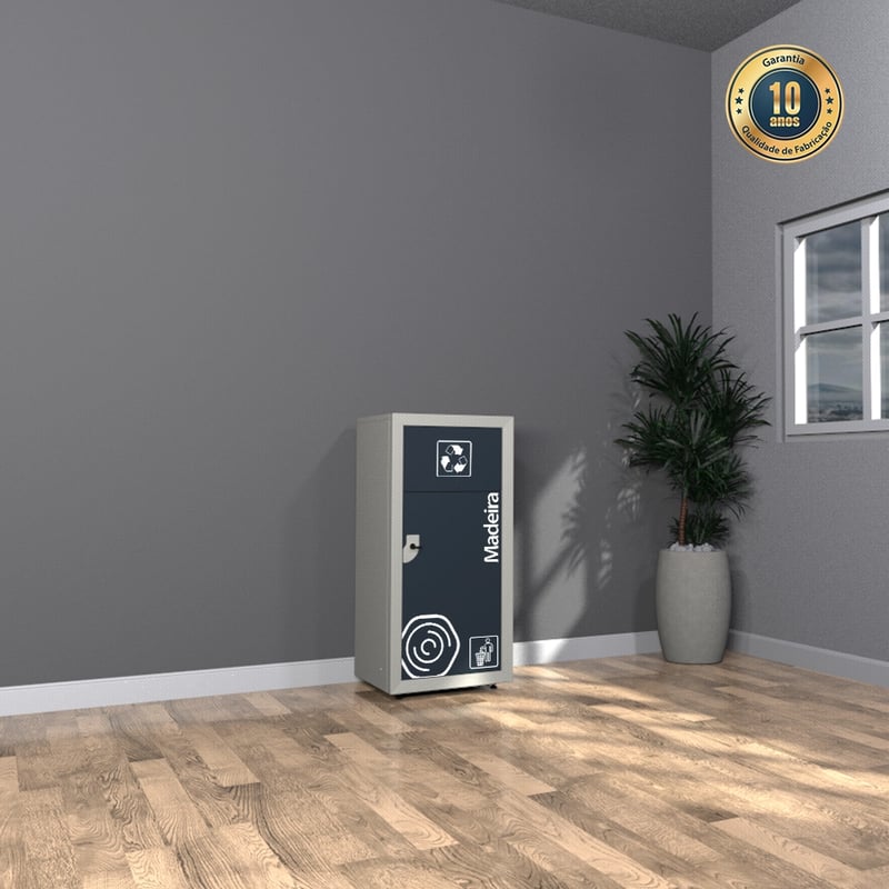 A identificação visual aplicada na porta sinaliza o descarte de resíduos de madeira, auxiliando na padronização da coleta seletiva e na correta separação dos materiais. A Lixeira Coleta Seletiva – Madeira combina robustez estrutural, facilidade operacional e confiabilidade, contando ainda com garantia de 10 anos.