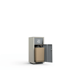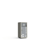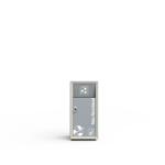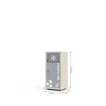 Com capacidade de 70 litros, a lixeira possui porta frontal que facilita a remoção dos resíduos, tornando o processo mais ágil e higiênico para operação e manutenção. Internamente, conta com cuba em fibra de vidro, material leve e durável que contribui para a eficiência na separação e manejo do lixo.