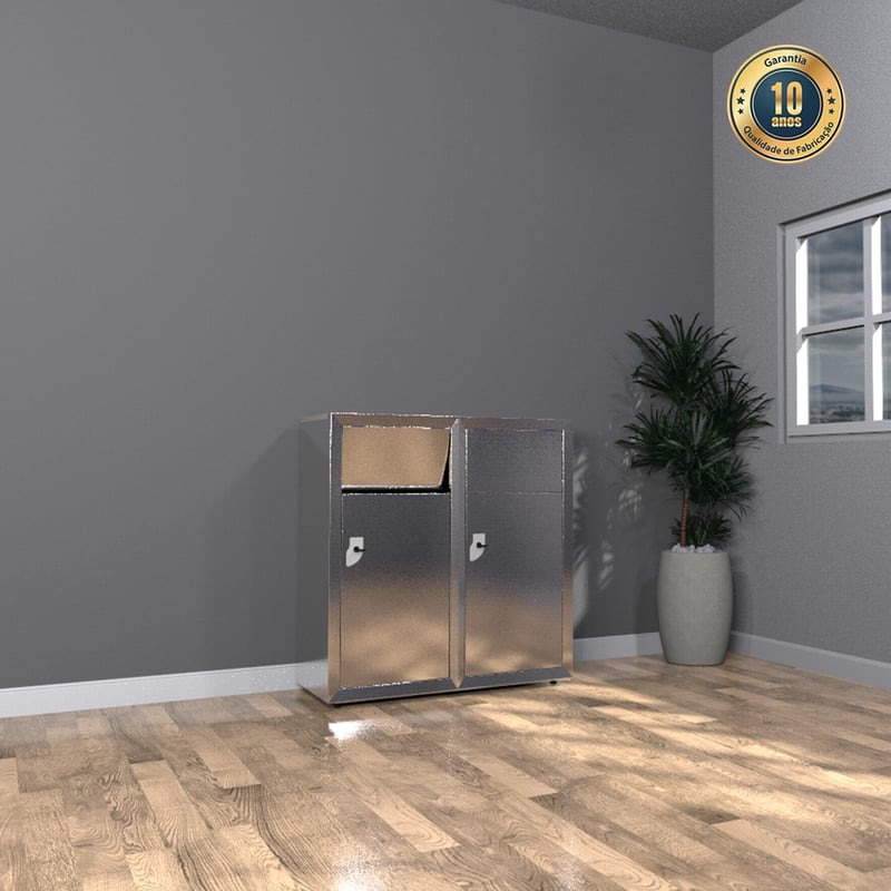 Com sistema de abertura frontal sem chave, oferece praticidade no descarte e na remoção dos resíduos, o que agiliza o processo de limpeza. Além disso, seu design funcional, aliado à estrutura robusta, permite a separação eficiente entre recicláveis e orgânicos, promovendo organização e sustentabilidade no ambiente.