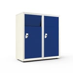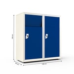 Com capacidade total de 140 litros, oferece dois compartimentos internos, o que facilita a separação de resíduos recicláveis e orgânicos. Além disso, conta com porta frontal equipada com puxador integrado, dispensando o uso de chave e proporcionando praticidade na remoção dos resíduos. A cuba interna em fibra de vidro garante leveza no manuseio, bem como facilidade na higienização.