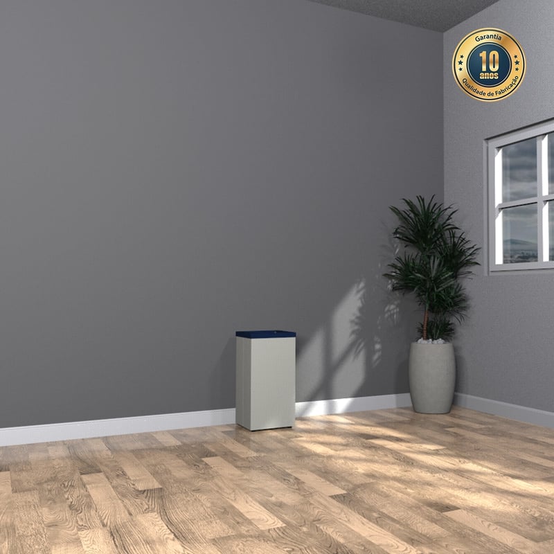 Com capacidade de 50 litros, é ideal para locais com fluxo constante de usuários. A retirada do lixo é feita pela parte superior, sem a necessidade de portas, o que facilita a manutenção diária e ainda assegura a higiene no manuseio. Portanto, trata-se de uma escolha eficiente para empresas, espaços públicos e também ambientes corporativos que valorizam a organização.