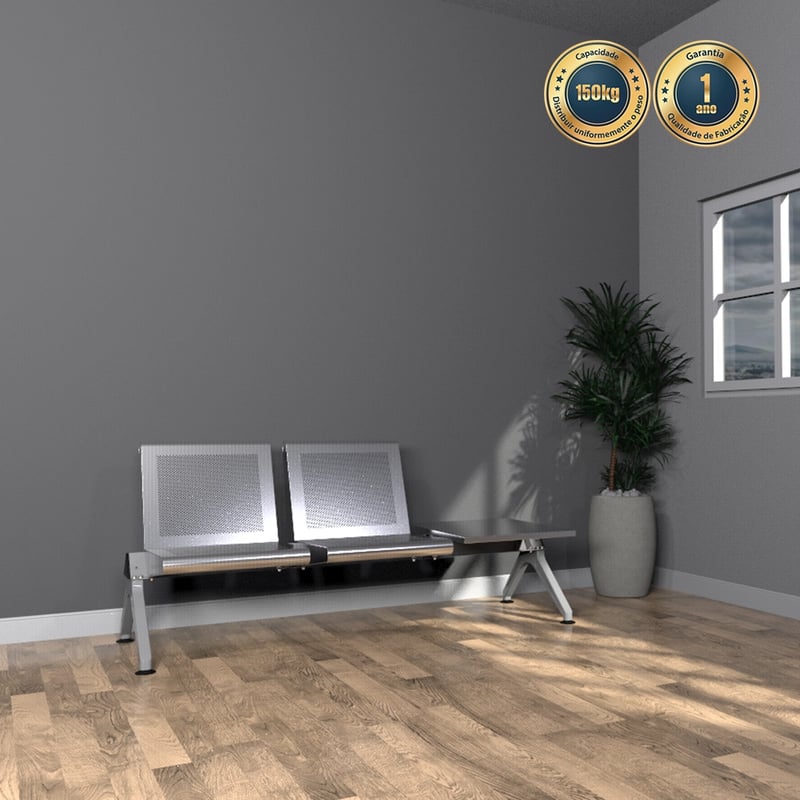 Cada assento suporta até 150 kg, assegurando segurança e confiabilidade em áreas de alto fluxo. A base reforçada contribui para estabilidade estrutural mesmo sob uso intenso.