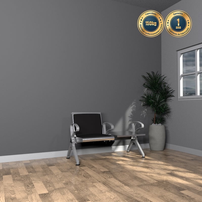 Fabricada em aço galvanizado, oferece alta durabilidade e excelente desempenho em áreas de uso contínuo. O assento estofado na cor preta proporciona melhor acomodação ao usuário, especialmente em períodos de espera prolongados, agregando conforto e sofisticação ao ambiente.