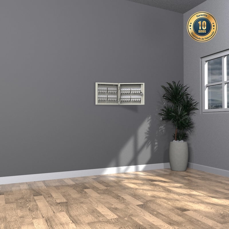 O Porta Chaves – Nk 3040 é ideal para empresas, hospitais, escolas e indústrias que precisam manter até 40 chaves organizadas e seguras. Com estrutura em aço de alta resistência, conta com tripla camada anticorrosiva e pintura antimicrobiana com nanotecnologia, protegendo contra germes, fungos e odores. Equipado com chaveiros numerados e suporte interno, é uma solução prática, segura e durável, com 10 anos de garantia e sistema Hands Cut Free para segurança no manuseio.