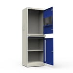 Adicionalmente, o modelo está disponível em várias cores de portas, o que possibilita a personalização conforme a identidade visual da empresa. Assim, o ambiente se mantém funcional e também alinhado à estética do local.