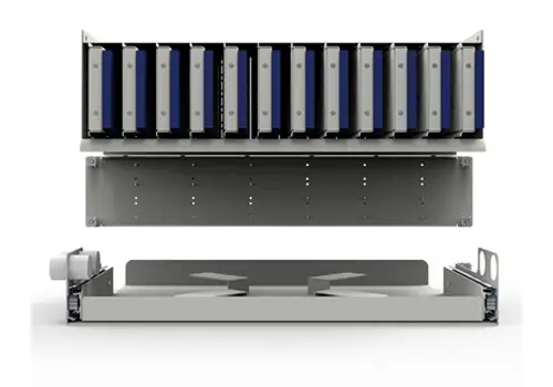 Distribuidor Interno óptico dio 72 FO desenvolvido para concentração, acomodação, distribuição e fusão de fibras ópticas. Instalado em racks de 19” ou 23″ (rotação do suporte de fixação), permite a acomodação de até 72 fusões em bandejas ocupando apenas 2U de altura. Possibilita a utilização de cabos internos ou externos, com fibras monomodo (SM) ou multimodo (MM) do tipo loose, tight ou multicordão. Possui gaveta deslizante e painel de adaptadores intercambiável, que permite a fixação de adaptadores LC, SC, E2000, ST ou FC.