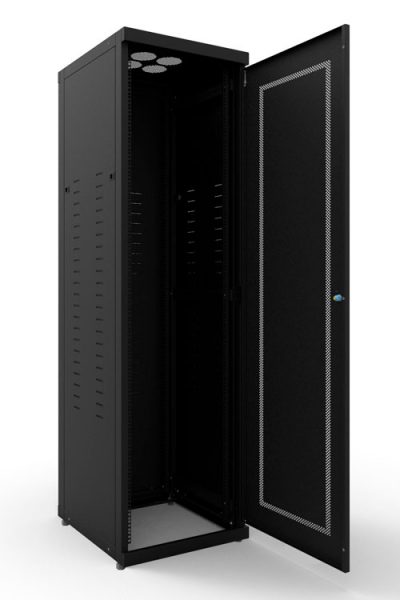 A estrutura, feita de chapa pré-zincada de 1,25mm, apresenta opções entre réguas de 700mm, 900mm e 1000mm. As réguas horizontais e verticais são de 2mm de chapa pré-zincada. Como resultado de nossa tecnologia construtiva, você pode personalizar o rack com uma porta frontal em 1,25mm e vidro temperado transparente de 5mm, além de uma porta traseira em 1,25mm com chapa perfurada sextavada de 5mm. As laterais possuem venezianas em chapa pré-zincada de 0,8mm. em conclusão o rack 19″ 44U é desmontável e conta com uma pintura em epóxi em pó preto microtexturizado RAL9011.