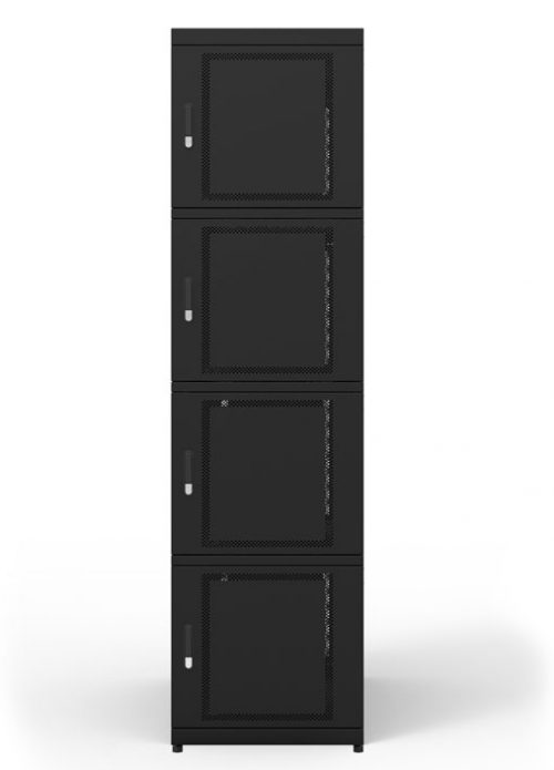 - Portas em chapa de aço perfurada com sistema de chaves independentes por compartimento;
