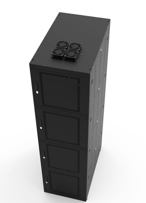 - Teto projetado com abertura para montagem de ventiladores e flange para passagem de cabos;
