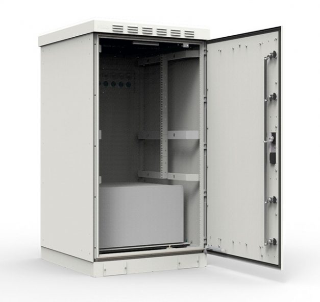 réguas para equipamentos padrão 19″, sistema de ventilação forçada, luminárias LED acionadas com a abertura da porta, sensores de abertura de porta e olhais de içamento. Entre as opções disponíveis estão o sistema de energia (fonte CC, painel de distribuição e banco de baterias), condicionador de ar Wall Mounted, cofre para banco de baterias, e itens FTTH (DGO, splitter, pigtail, patch cord, adaptadores, etc.).Por fim o Rack Outdoor 24U proporciona uma solução completa e adaptável, sendo possível solicitar opções adicionais e personalizações específicas.